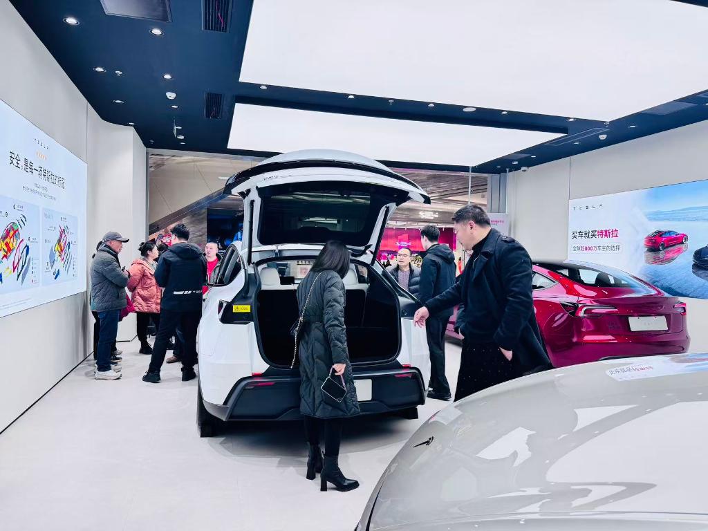 2026年1月6日,市民在武汉武昌万象城内一家特斯拉门店看车。新华社记者 龚联康 摄